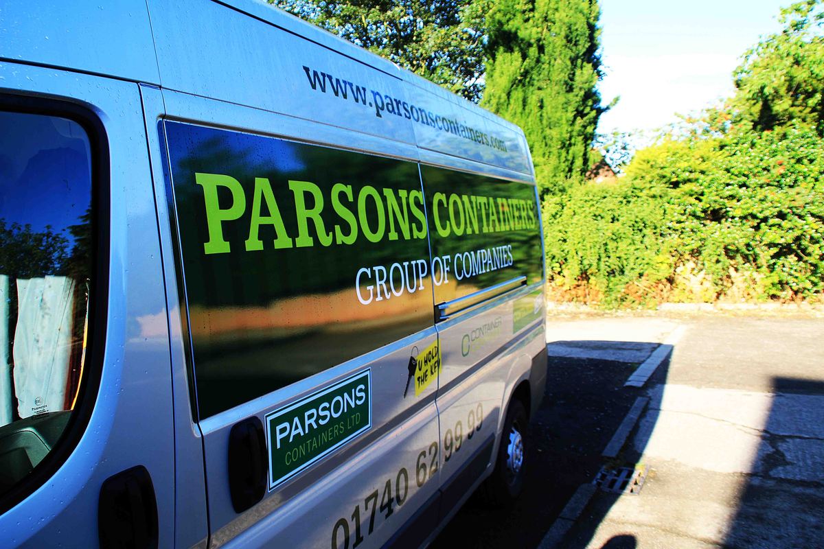 Our Van all Logo'd up with our new logo Parsons Containers Group of Companies